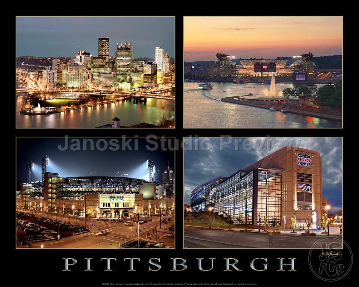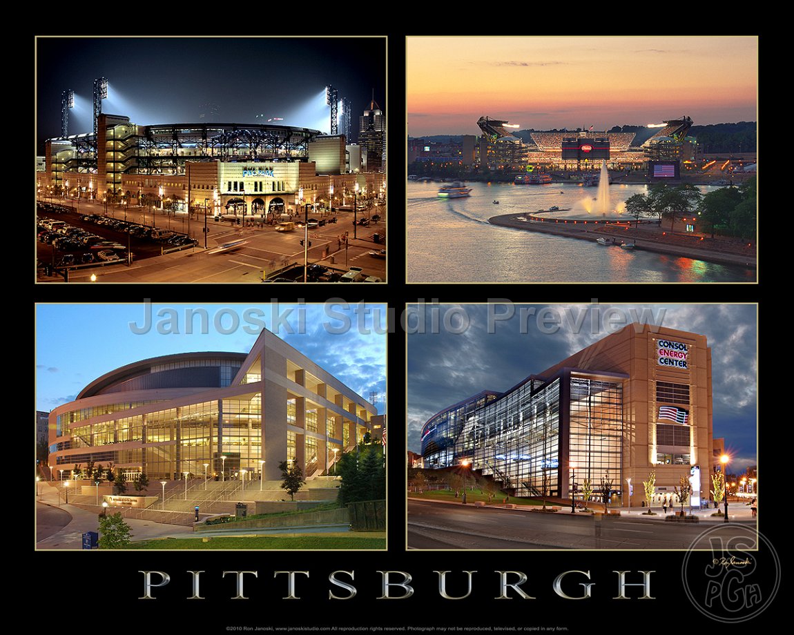 3 The City, Heinz Field, PNC Park & Consol Energy Center Group of 4 Collage. |